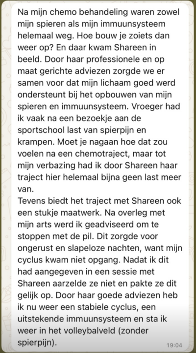 Ik kijk ernaar uit om van je te horen! Deel gerust jouw verhaal en laat me weten welke gezondheidsuitdagingen jij momenteel ervaart. Dit helpt me om te beoordelen hoe ik je het beste kan ondersteunen. Voordat we starten plan ik altijd eerst een fysieke of online gratis en vrijblijvende kennismaking in.